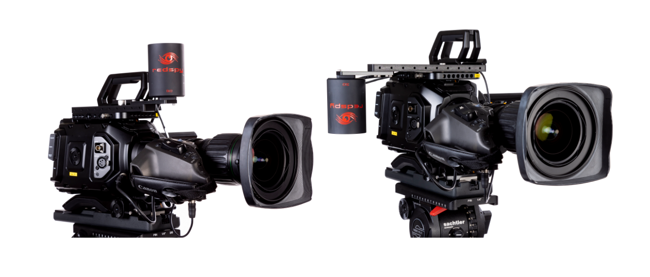 RedSpyカメラは、シネデジタルカメラから放送用カメラまで、さまざまなカメラに取り付けることが可能です。映画用PLマウントカメラ、放送用B4マウントカメラなど、外部同期信号を入力可能なカメラであれば幅広く対応します。また、使用環境にあわせ、RedSpyカメラを天井や床に向けて設置し撮影が行えます。